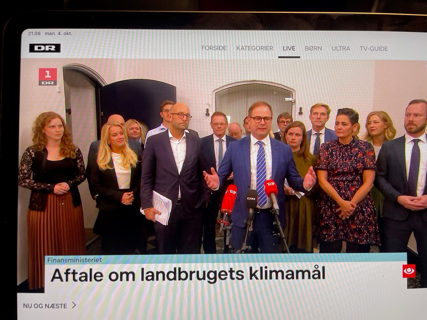 Den 4. oktober lykkedes det regeringen at indgå en bred aftale om grøn omstilling af landbruget med næsten alle Folketingets partier undtagen Alternativet. Med aftalen var partierne enige om at sætte et bindende mål for landbrugets CO2-udledning på 55-65 procent frem mod 2030.