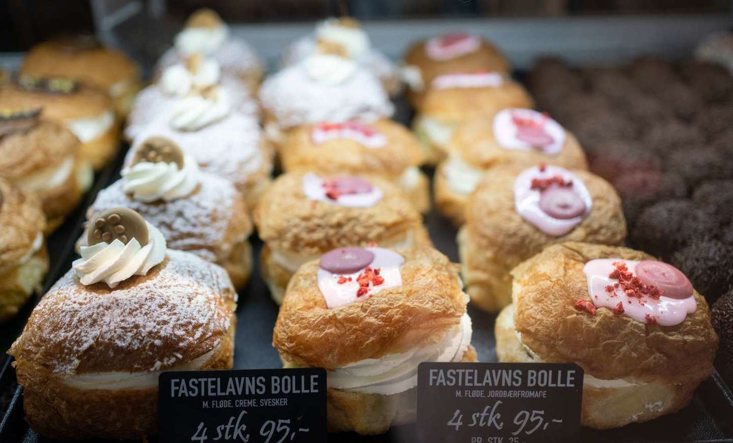- For fire år siden havde vi vores gærbolle-fastelavnsboller og så én flødeskumskage med almindelig creme. Nu har vi seks forskellige slags fyld. Det er helt klart corona, som for alvor har givet danskerne lyst til fastelavnsboller, siger bagersvend Kristian Parmo, der alligevel blev overrasket, da han hørte, at deres fastelavnsboller nu var nået helt ud i damebladene.