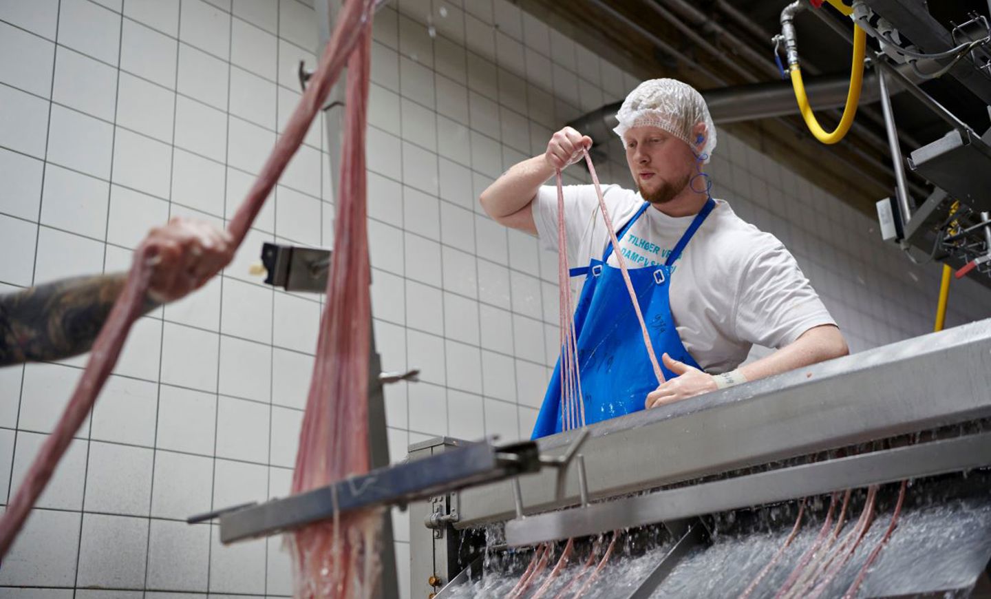 - Jeg elsker, at jeg sjældent laver det samme hver eneste uge, specielt når man er elev. Og så er det et arbejde, der kræver stor præcision i et højt tempo. Vi lærer også rigtig meget om bæredygtighed, biologi og lignende, som du kan bruge i fremtiden. Så selvom jeg stadig laver musik i min fritid, så har jeg fundet min plads her i tilværelsen, og det er som tarmrenser, siger Emil Christian Holm til Danish Crown.