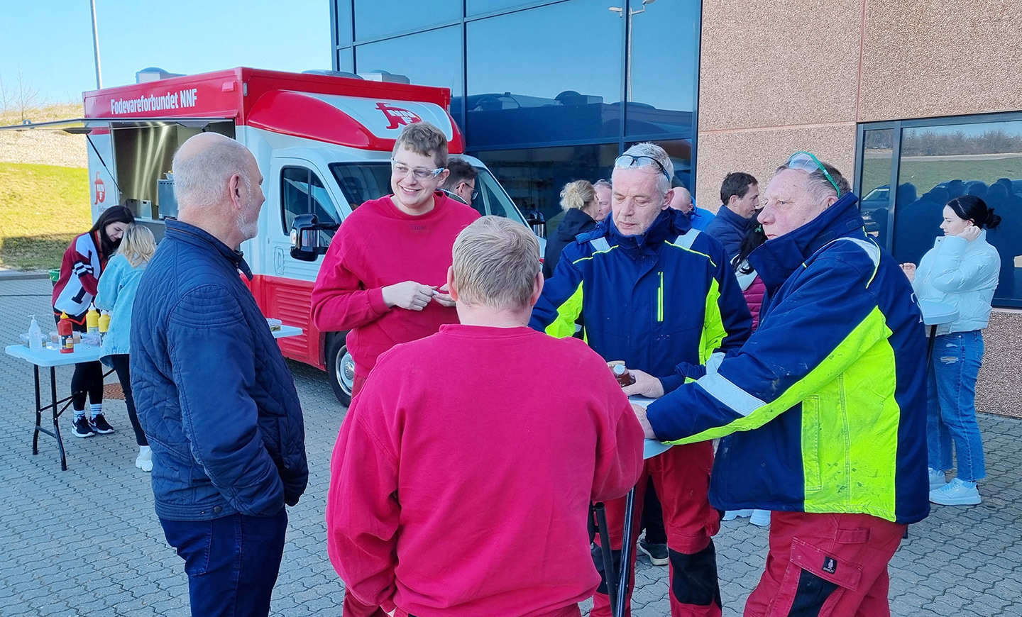 Der blev i hvert fald langet mange ’skinkesøm’ over disken en flot, men lidt kolde aprildag, hvor Fødevareforbundet NNF’s foodtruck gæstede Thise Mejeri. Her kunne medarbejderne få en ristet pølse samt en snak om fagforeningsmedlemsskab og den nye overenskomst.