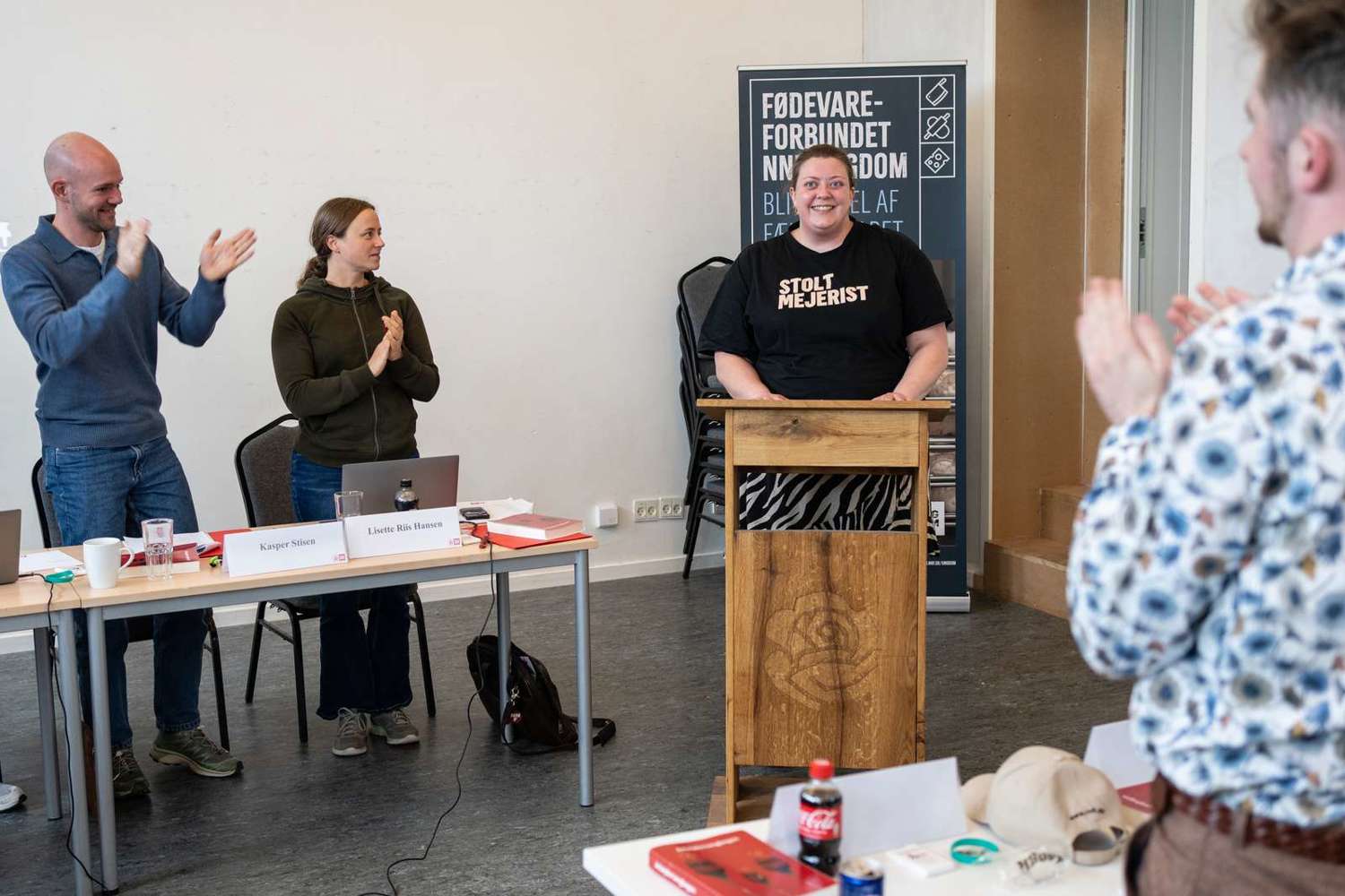 Klapsalverne begyndte allerede, inden dirigenten var færdig med at stille spørgsmålet, og udviklede sig hurtigt til en stående applaus. Der var ingen modkandidater, og således blev mejerist Katrine Egholm valgt som den blot anden landsformand for Fødevareforbundet NNF Ungdom. Det skete den 13. april på ungdomsorganisationens anden kongres.