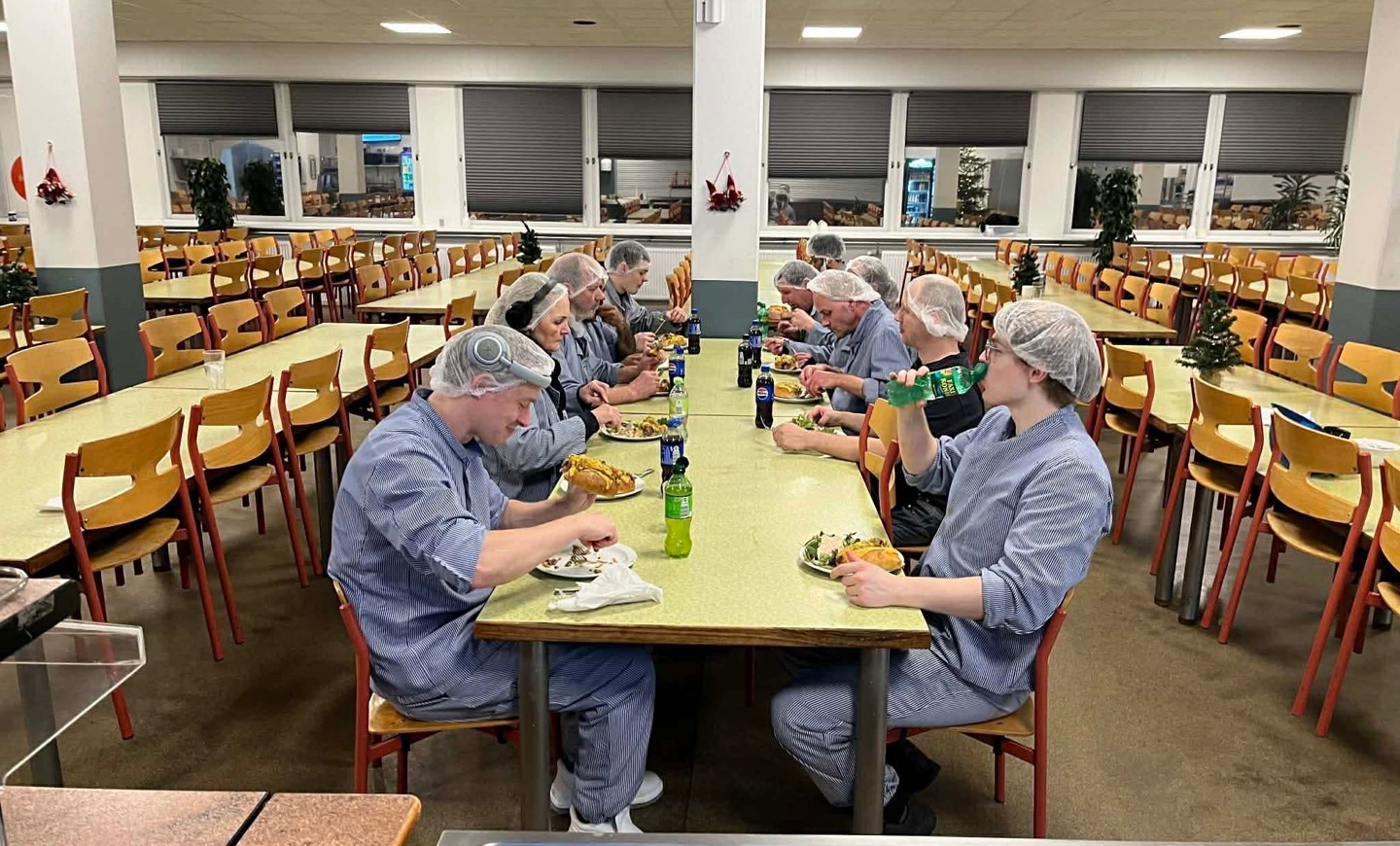 Netop derfor har man på slagteriet en fast tradition i december på de travle dage med overarbejde.